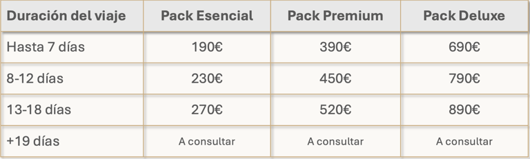 El Pack Esencial es un servicio exclusivo de diseño de itinerario.