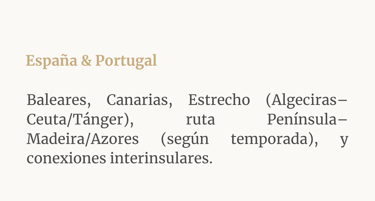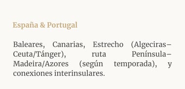 Operamos con cobertura en todas las costas europeas y también en Marruecos, Argelia, Túnez y Turquía. Aquí tienes un resumen orientativo por áreas.